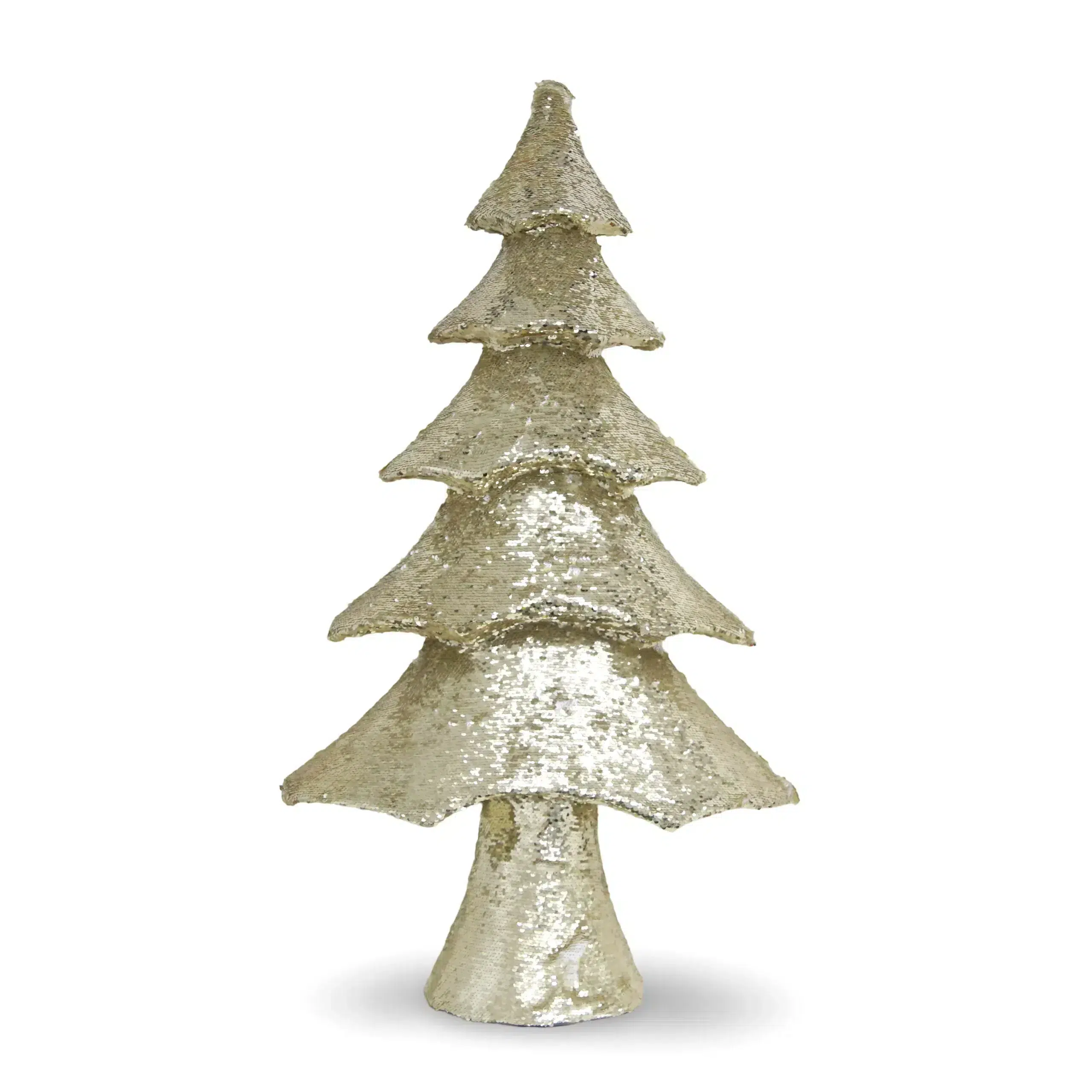 Glistening Holiday Spire: Gold & White Payette Christmas Tree Ornament – Elegant Festive Decor