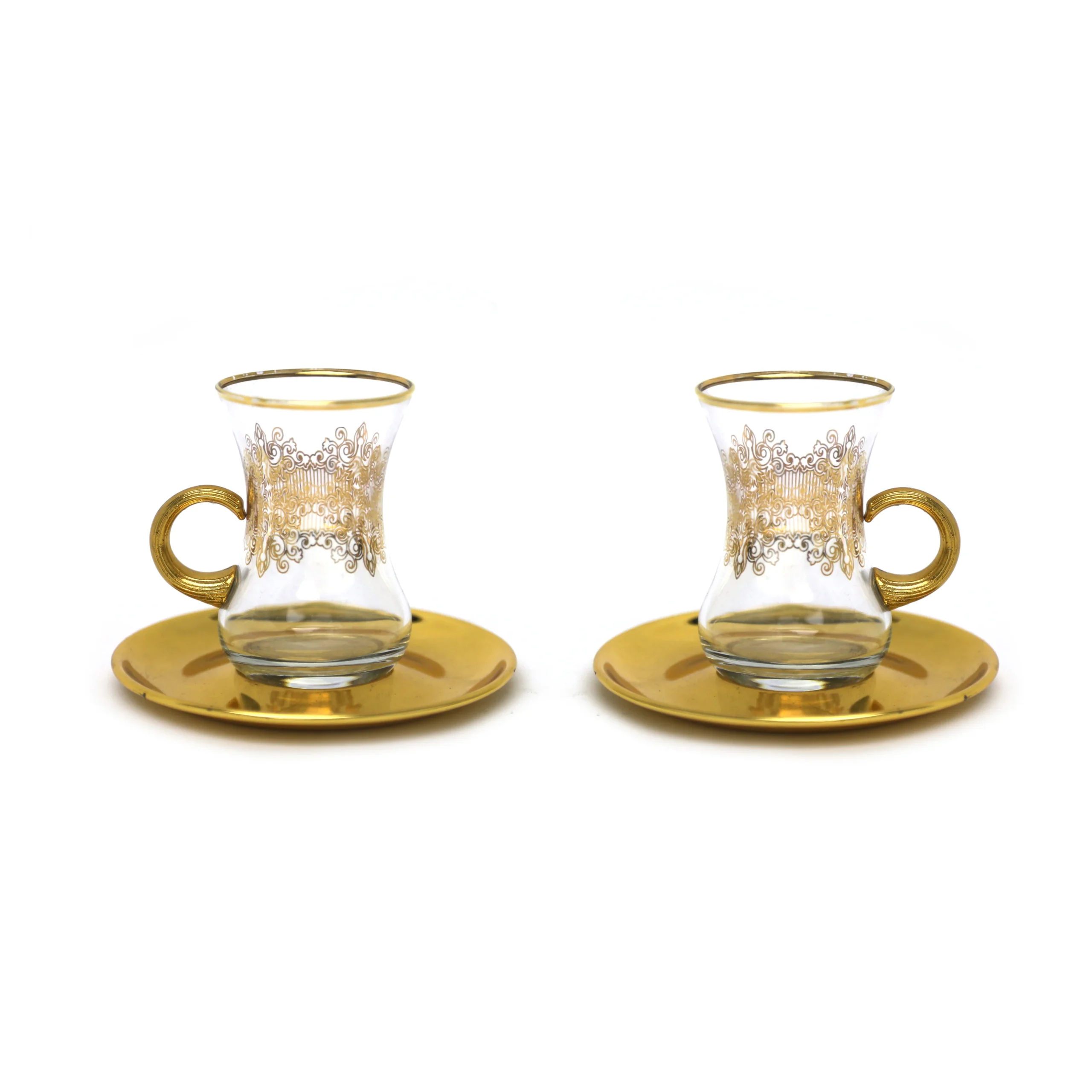 Clear Tea Cup Metal Holder & Saucer