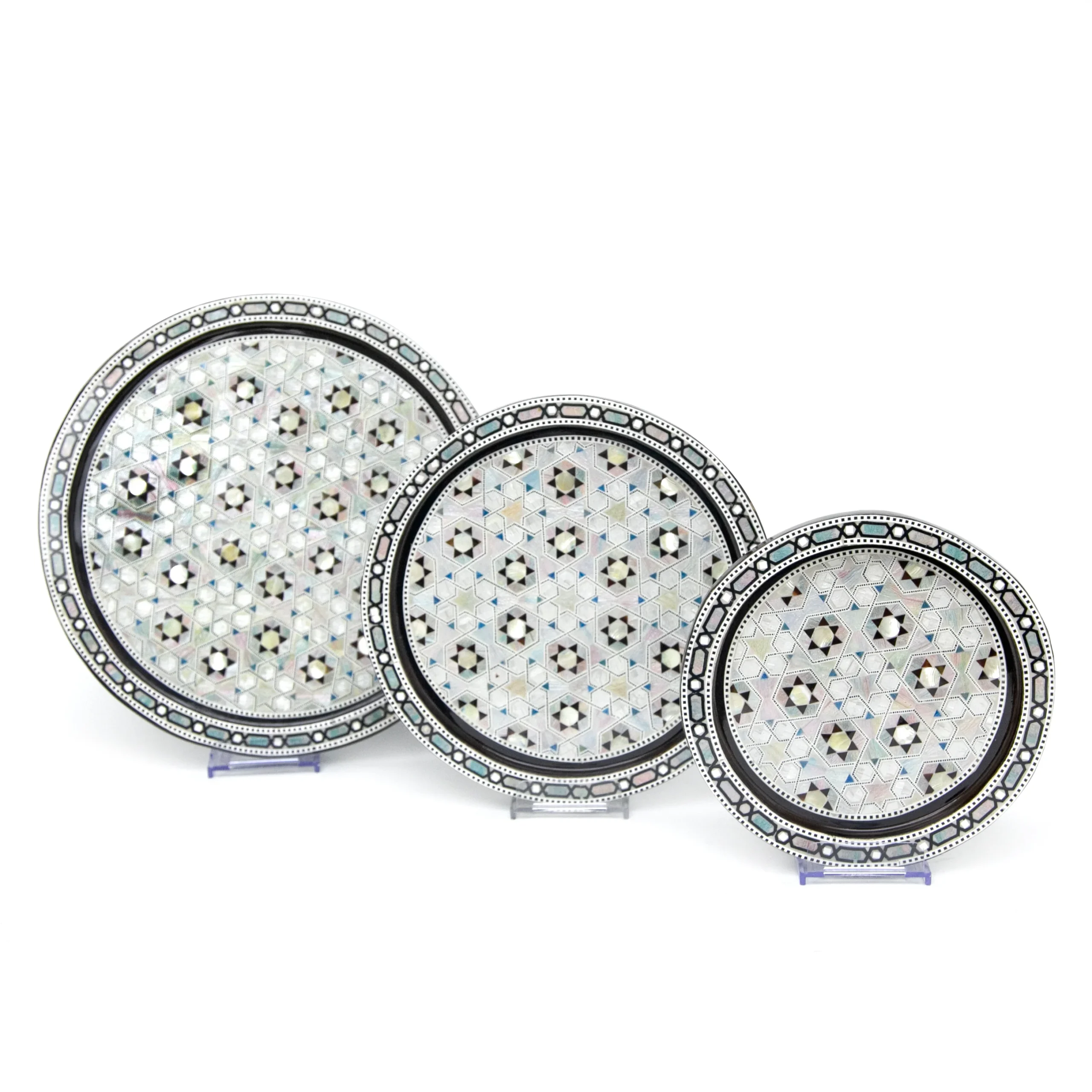 Wooden Colored Arabesque Round Tray